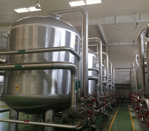 多介质过滤器是利用石英砂、锰砂、无烟煤两种或者三种滤料去除原水中的悬浮物,属于普通快滤设备。含有悬浮物颗粒的水在管道混合器中与絮凝剂、碱充分混合,使水中形成胶体颗粒的双垫层被压缩。当胶体颗粒流过多介质过滤器的滤料层时,滤料缝隙对悬浮物起筛滤作用使悬浮物易于吸附在滤料表面。当在滤料表层截留了一定量的污物形成滤膜,随时间推移过滤器的前后压差将会很快升高,直至失效。此时需要利用逆向水流反洗滤料,使过滤器内石英砂及无烟煤层悬浮松动,从而使粘附于石英砂及无烟煤表面的截留物剥离并被水流带走,恢复过滤功能。使用的双层滤料是在过滤层上部放置较轻的大颗粒无烟煤,下部为大比重的小颗粒石英砂,这样可以充分发挥整个滤层的效率、提高截污能力。